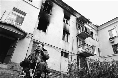 烏克蘭危機(jī)爆發(fā)以來,烏東部地區(qū)民眾生活受到嚴(yán)重影響。圖為日前頓涅茨克的一名老人坐在被毀壞的建筑前企盼國家早日恢復(fù)和平。