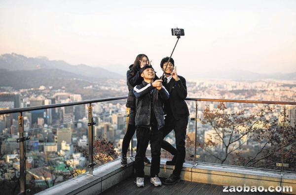 這組人把手機架在自拍桿上以首爾市為背景留影,就不知道他們的自拍桿是否是“合法”的。