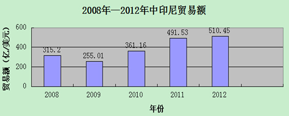 自1990年兩國恢復(fù)外交關(guān)系以來,特別是隨著中國—東盟自貿(mào)區(qū)的建成和中印尼建立起戰(zhàn)略伙伴關(guān)系,中印尼經(jīng)貿(mào)合作取得了全面發(fā)展,雙邊貿(mào)易投資額保持高速增長。根據(jù)印度尼西亞Badan Pusat Statistic( BPS)2013年的數(shù)據(jù)顯示自2001至2008年,中印尼雙邊貿(mào)易額年均增速超過20%,雙方領(lǐng)導(dǎo)人定下2010年貿(mào)易額突破300億美元的宏偉目標(biāo),而2008年兩國貿(mào)易額就已經(jīng)達(dá)到315.20億美元,提前2年實(shí)現(xiàn)。2009年受國際金融危機(jī)沖擊影響,雙邊貿(mào)易額有所下滑。但是排除金融危機(jī)的負(fù)面影響后,回升迅速。武政文在《深化戰(zhàn)略合作期的中國與印尼經(jīng)貿(mào)問題及對策》一文中的數(shù)據(jù)顯示2010年—2012年,雙邊貿(mào)易額分別達(dá)到361.16億美元、491.53億美元和510.45億美元,繼續(xù)保持高速增長。截至2012 年底,印尼對華的貿(mào)易額已大大超過其對美國和日本的貿(mào)易額,中國已成為繼美日之后的印尼主要貿(mào)易伙伴。另外,從貿(mào)易結(jié)構(gòu)上來看,印尼對我國出口多為初級產(chǎn)品,涉及能源、鋼鐵等。而我國對印尼出口的多為經(jīng)過加工的中高端產(chǎn)品。雙方各取所需,互補(bǔ)性強(qiáng)。可以預(yù)想,未來隨著“21世紀(jì)海上絲綢之路經(jīng)濟(jì)帶”戰(zhàn)略的不斷推進(jìn),中印尼雙邊貿(mào)易額還將繼續(xù)攀升,雙邊合作范圍將進(jìn)一步擴(kuò)大。