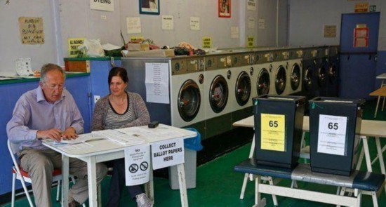 圖為牛津的“第一流洗衣店”(The Ace Laundrette),它已不是第一次當(dāng)票站,5月7日將再為英國選民服務(wù)。(圖:路透社)