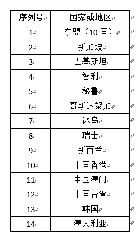 目前,中國已簽署自貿協定14個,涉及22個國家和地區。分別是中國與東盟、新西蘭、新加坡、巴基斯坦、智利、秘魯、哥斯達黎加、冰島、瑞士、韓國和澳大利亞的自貿協定,內地與香港、澳門的更緊密經貿關系安排(CEPA),以及大陸與臺灣的海峽兩岸經濟合作框架協議(ECFA)。