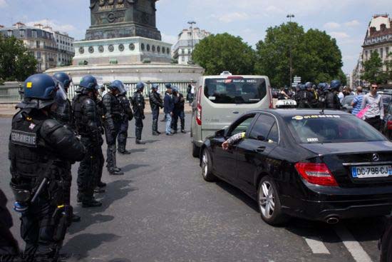 法國巴黎的出租車司機與優步(Uber)專車司機16日發生沖突,出租車司機向專車投擲石塊,最后防暴警察出動才得以制止事端。