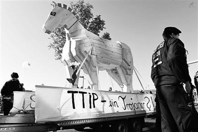 據埃菲社柏林電,據德國警方的消息,近日約15萬人走上柏林街頭,抵制歐盟和美國間的《跨大西洋貿易和投資伙伴關系協定》(TTIP)。本次游行由多個社會組織、環保組織、工會和消費者保護組織發起,參與人群覆蓋了全年齡層。他們從柏林中央火車站出發,途經政府區,最終抵達勝利紀念柱,并在此進行了相關演講,游行線路上滿街旗幟和標語在喇叭聲和鼓聲中飄揚。此前德國從未有過如此大規模的抗議TTIP游行,這也是歐洲近年來最大規模的抗議活動。那么該游行活動究竟有何原因?將會對TTIP的談判產生怎樣的影響呢?