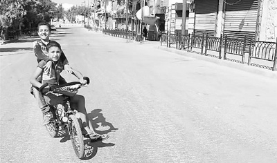 9月15日,在敘利亞阿勒頗老城,兩名男孩在玩耍。新華社記者 楊 臻攝