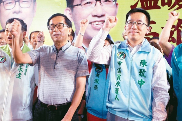 陳水扁日前參加兒子陳致中的選舉造勢晚會,被臺中監(jiān)獄認定違反“不上臺”的保外就醫(yī)相關(guān)規(guī)定。(圖片來源:臺灣《聯(lián)合報》)