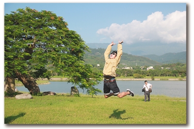 大陸年輕游客在臺東池上鄉的風景里“任性”。