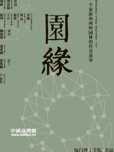 廈門理工數字創意學院學生耗時兩年,從鼓浪嶼菽莊花園和臺灣板橋花園入手,拍攝歷史人文紀錄片《園緣》,講述了臺灣林氏家族幾代人在兩岸間來回輾轉,起起伏伏的發展歷程。透過在臺灣和大陸對望的這兩座花園,透視那個特殊的年代,林氏家族背后微縮的臺灣近代史和兩岸分分合合、難以割舍的血脈之情。
