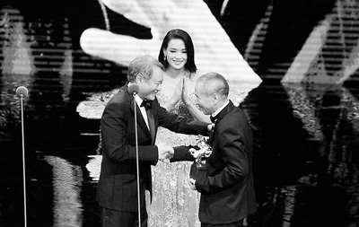 臺灣導(dǎo)演李安為侯孝賢頒獎,演員舒淇鼓掌祝賀。(資料圖片)