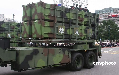 此外,臺灣“國防部”于2007年4月舉行漢光演習時,首次宣布成功研發雄風-2E型(HF-IIE)導彈,并宣稱那是一種防衛性武器,只在大陸對臺進行打擊后,才會對特定軍事目標進行回擊。