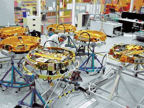 臺(tái)“太空中心”工作人員正在進(jìn)行六顆衛(wèi)星連結(jié)接口測(cè)試的準(zhǔn)備