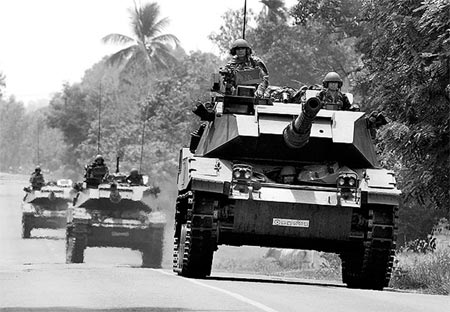 泰國(guó)軍隊(duì)坦克在泰柬邊境附近巡邏