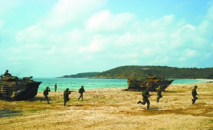 美國向“金色眼鏡蛇”演習投放的海軍陸戰隊為第3遠征軍,主要練習快反作戰,它是太平洋總部的機動作戰部隊,被美軍稱為“可以在夏威夷到好望角之間作出快速反應的部隊,能在4~7天內攻擊亞洲任何一個地方。同時,美國海軍還出動了船塢登陸艦“日耳曼城”號及“托爾圖加”號、CH-46海武士直升機等多種軍機、通用登陸艇以及M-777牽引榴彈炮。