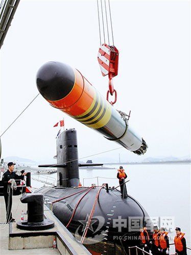 資料圖:東海艦隊某潛艇支隊進行吊裝魚雷裝艇。