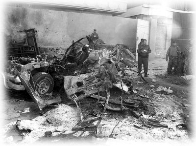 阿富汗東部楠格哈爾省首府賈拉拉巴德市遭襲擊的北約省級重建小組大樓附近一片狼藉。新華社發
