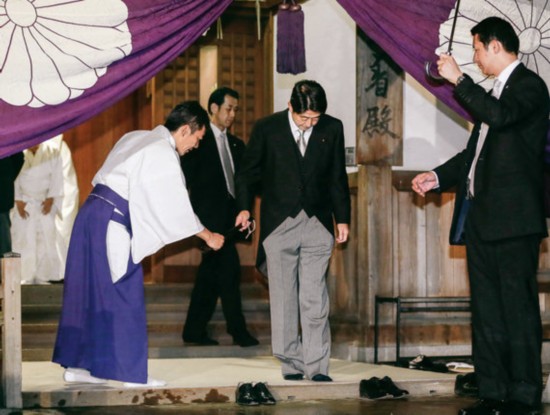 2012年 10 月 17日,時任自民黨總裁的安倍晉三(右二)參拜位于東京的靖國神社。