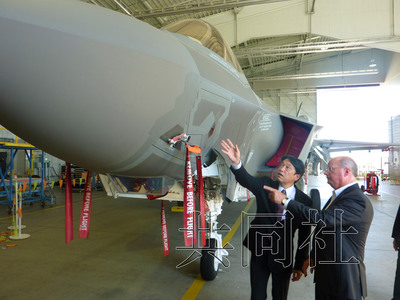 當地時間7月8日,日本防衛相小野寺五典在美國德克薩斯州沃斯堡參觀了洛克希德·馬丁公司生產F-35戰斗機的工廠。(圖片來源:共同社)
