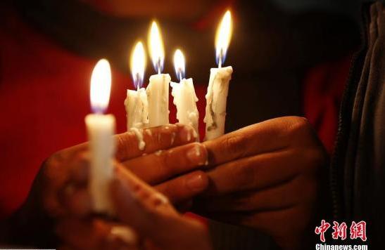 當地時間2月2日晚,約旦首都安曼,約旦數百人齊聚日本駐安曼大使館前,點亮蠟燭為遇難人質哀悼。日本駐約旦大使館降半旗,對遇難者表示哀悼。