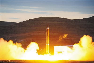高原戈壁,第二炮兵某洲際戰略導彈旅執行一場發射演練時,導彈騰飛的瞬間。
