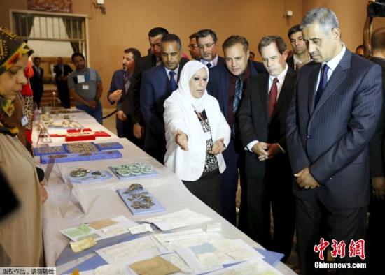 資料圖:當(dāng)?shù)貢r(shí)間2015年7月15日,伊拉克巴格達(dá),伊拉克國家博物館舉行走私文物歸還儀式,伊拉克旅游部長Adel Shirshab與美國駐伊大使Stuart Jones出席。據(jù)悉,美國在敘利亞對“伊斯蘭國”展開突襲時(shí)截獲了這批走私文物。