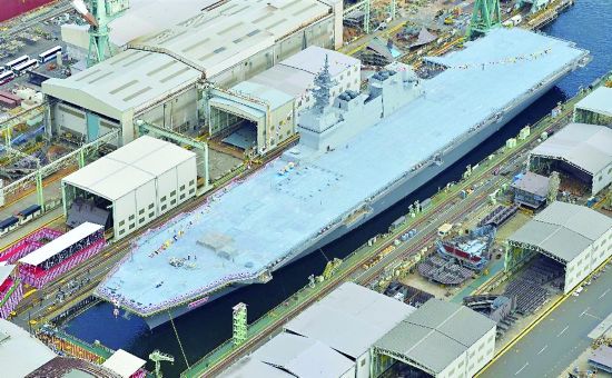 日本海上幕僚監部27日公布,“加賀”號是海上自衛隊最大的艦艇,全長248米,寬38米,滿載排水量達2.6萬噸,可搭乘470人,配備9架反潛直升機,未來也能起降自衛隊從美國采購的“魚鷹”傾斜旋轉翼飛機。據稱,“加賀”號的命名下水儀式非常隆重,彩帶環繞著巨大的船體,船體入水后還有彩球、鳴炮祝賀!把呕⑷毡尽本W站介紹稱,“加賀”號是今年3月服役的“出云”號直升機航母的姊妹艦。盡管日本官方掩耳盜鈴地宣稱該艦為“護衛艦”,但按照國際標準,它應該被歸為直升機航母。如果日本為其配備美制F-35B垂直起降戰機,它更可搖身一變成為輕型航母。防衛省透露,“加賀”號下水后還將配備必要的裝備,預定在2017年正式服役。