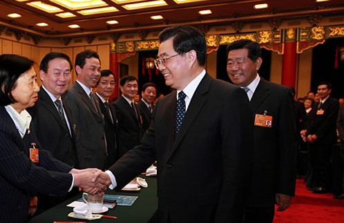 胡錦濤4日下午看望參加全國政協十一屆一次會議的民革、臺盟、臺聯委員,就對臺政策發表了講話。(圖片來源:新華社)