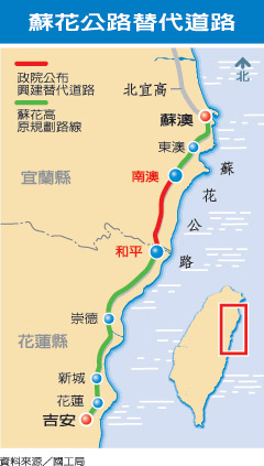 臺當局“行政院長”劉兆玄昨天在花蓮宣示,將針對蘇花公路“最危險、會經常發生意外、發生車禍,同時在環評上、環保上爭議比較少的路段,優先來推動。”“行政院”這項興建具高速公路規格的“蘇花公路危險路段替代道路”政策,立即引起外界質疑蘇花高“借殼上市”的批評,環保團體懷疑當局有關部門是要以“拼接法”逐一施工蘇花高;花蓮縣長謝深山則回應“改善蘇花公路就是罪大惡極嗎?”花蓮人需要“一條安全回家道路”。