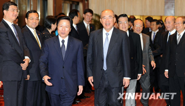 11月9日,中國國民黨榮譽(yù)主席吳伯雄(中右)在臺北會見應(yīng)國民黨中央邀請率團(tuán)來訪的中共江蘇省委書記梁保華(中左)。(圖片來源:新華社)