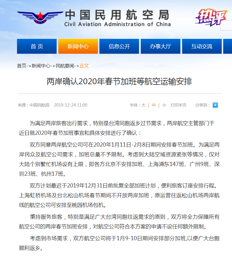 2020兩岸春節加班機:一波三折終確認,民生之事盼真誠