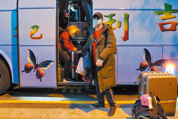 第一批武漢返臺的臺胞解除隔離。(圖片來源:臺灣《旺報》)