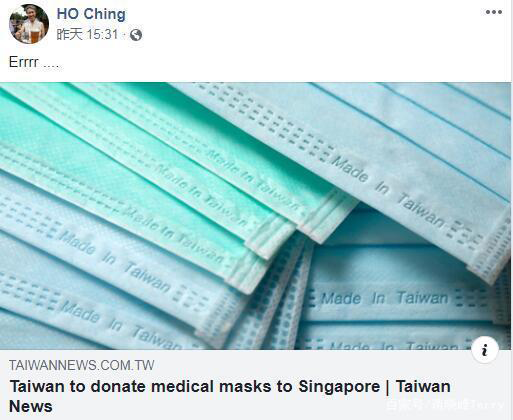 面對(duì)臺(tái)灣捐贈(zèng)的口罩,新加坡總理夫人五味雜陳地在臉書上寫下了“Errrr…”(呃…)字回應(yīng),被視為不領(lǐng)情,而遭到了臺(tái)灣網(wǎng)軍大量負(fù)面用語(yǔ)的攻擊。