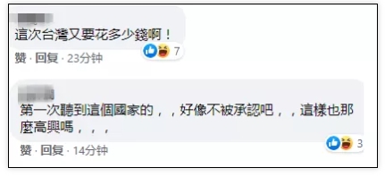 有網友表示,“這次臺灣又要花多少錢啊!”“第一次聽到這個地方,好像不被承認吧,這樣也那么高興嗎?”也有網友表示,“索馬里蘭又不是一個國家,只是來要錢而已,有什么好炫耀的”;“兩個不被承認的‘國家’互相取暖”。