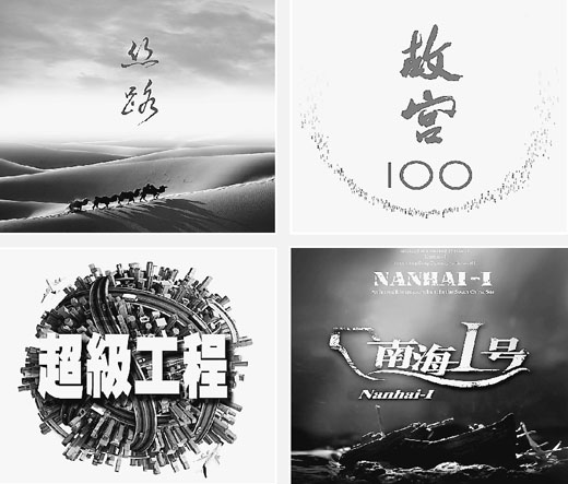 圖為紀錄片《絲路》、《故宮100》、《超級工程》、《南海1號》海報。
