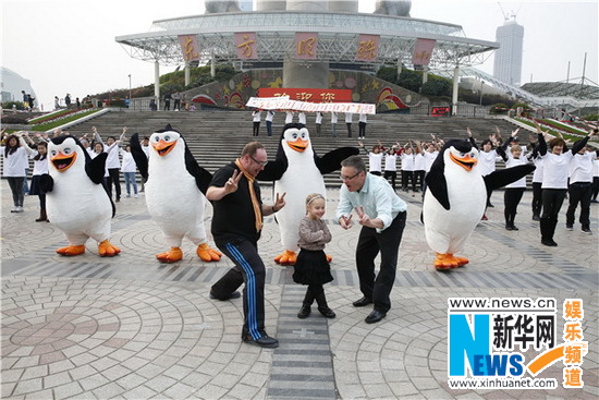 為了宣傳影片,導(dǎo)演之一西蒙更把自己的小女兒帶到上海一起參與快閃。百人快閃舞蹈結(jié)束后,導(dǎo)演西蒙的女兒還用流利的中文說道:“11月14日要來看《馬達加斯加的企鵝》哦!”將活動氣氛推向高潮。
