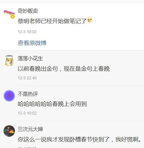 這位網(wǎng)友很適時(shí)地提醒我們:春晚快到了,春節(jié)快到了,豬年快過去了……