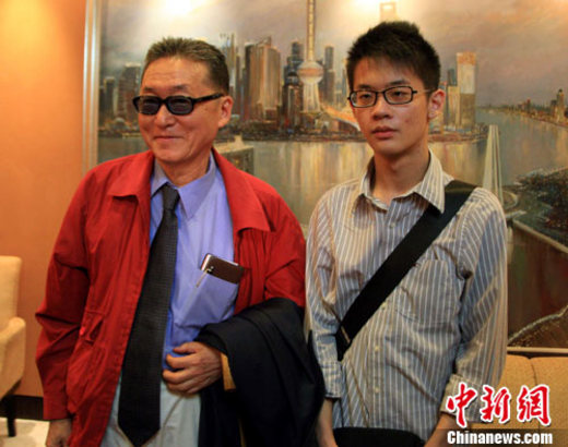 8月26日中午,臺灣知名學者李敖攜子李戡到達上海浦東國際機場,他將與家人一起共赴世博參觀。中新社記者 潘索菲 攝