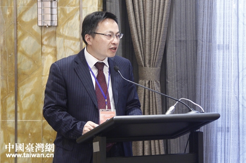 上海臺(tái)灣研究所常務(wù)副所長(zhǎng)倪永杰在研討會(huì)上進(jìn)行主題發(fā)言。(中國(guó)臺(tái)灣網(wǎng) 張潔 攝)