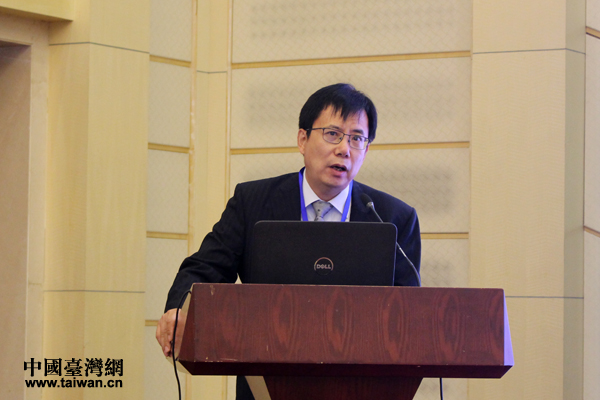 中國(guó)社會(huì)科學(xué)院臺(tái)灣研究所副所長(zhǎng)、研究員張冠華發(fā)表主題演講。(中國(guó)臺(tái)灣網(wǎng) 張潔 攝)