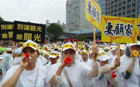 島內(nèi)觀光業(yè)者走上街頭,抗議民進(jìn)黨施政不力,造成旅游市場(chǎng)萎縮。(資料圖片)