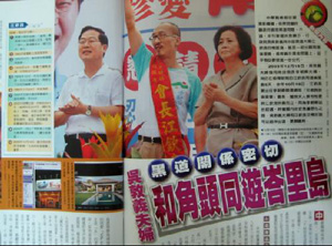11月4日,臺灣《壹周刊》報道稱吳敦義曾于去年12月與南投“黑道大哥”江欽良同游巴厘島;當天,民進黨南投縣長參選人李文忠也舉行記者會講了同一件事,“巧合”之處引人聯想。