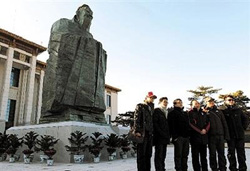 ◆我的壓力很大,如果只是做一個孔子像,就像大家曾經在很多地方參觀時見到的,那就不難。這不是室內雕塑,難題就在于如何讓雕塑和周圍的環境相適應、協調,也要考慮造型和風格,要和以往做的孔子像有所不同。
