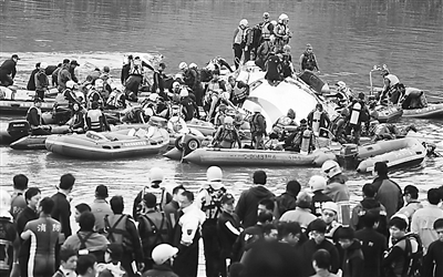 臺灣復興航空一架班機墜河。圖為救援現場。(新華社發)