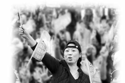 1月14日,國(guó)民黨“開票之夜”會(huì)場(chǎng)上,有民眾高呼“凍蒜”(當(dāng)選)。 人民日?qǐng)?bào)記者 任成琦攝