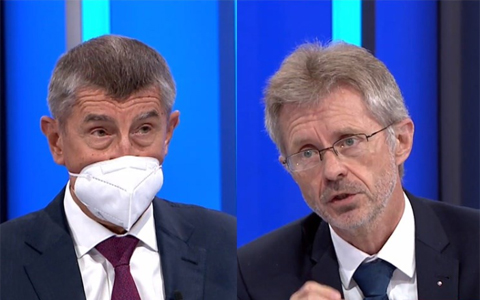 捷克總理巴比什與參議長維特齊在電視節(jié)目上辯論。(圖片來源:網(wǎng)絡(luò))