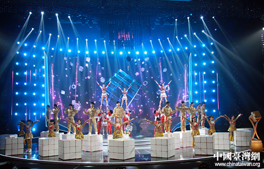 “兩岸大交流 你我共參與”網絡作品大賽13日在北京舉行頒獎晚會。圖為晚會開場舞蹈《快樂傳遞》。(中國臺灣網 王偉 攝)