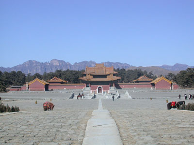 過鐘離殿往北又是一院,正面一殿最為雄偉,即黃粱夢呂仙祠主殿――呂祖殿,歇山式琉璃頂,面闊進(jìn)深各三間,前后各出單步廊,五彩餾金斗拱,飛檐翼角昂首望天。殿內(nèi)塑呂洞賓和童子像,兩壁嵌題詠刻石5塊。殿前有拜殿和月臺,兩側(cè)為東王母殿和西王公殿各七間。