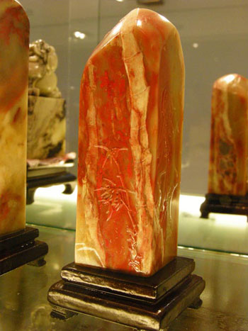 巴林石是一種葉臘石,因產(chǎn)于赤峰市巴林右旗而得名。石質(zhì)中含有多種化學(xué)成份,質(zhì)地潤澤細(xì)膩,斑斕多彩,微呈半透明,硬度適中,脆軟相間,據(jù)專家測定,巴林石色澤、成份與我國傳統(tǒng)雕刻原料壽山石、青田石齊名,在韓國、日本、印尼的葉臘石之上,可與寶石、瑪瑙媲美,是雕刻、鑲嵌的最佳原料,是中國三大采石基地之一。以巴林石為基礎(chǔ)建立的巴林奇石館,是巴林石品質(zhì)和藝術(shù)精品的集中展示地,巴林奇石館的主要特點是:一,品種全、花色多。館內(nèi)陳列著雞血石、黃凍石、牛角凍、羊脂凍、水晶凍、瑪瑙凍、五彩凍、桃花凍、金黃料、紅花石、五彩石、畫石和高嶺石等巴林石優(yōu)質(zhì)礦石20多個品種,花色近百種。其中雞血石和畫石最引人注目。二是巴林石作品題材廣泛,造型優(yōu)美,形象生動。雕件作品有反映草原特點的馬、牛、羊、駝,還有仿古器物,亭閣樓臺,花鳥蟲魚,詩詞書畫等大量精品佳作。三是雕刻手法精湛,繼承傳統(tǒng),推陳出新。巴林石雕在繼承傳統(tǒng)雕刻藝術(shù)的基礎(chǔ)上,借鑒吸收了國畫的工筆白描手法以及玉雕的色彩選擇,骨雕的鏤空技世,發(fā)揮鑿、鏟、雕、剔、鉆、拉等工藝精心雕刻,使創(chuàng)造出的作品形體清晰,層次分明,玲瓏剔透,栩栩如生。