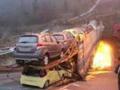 驚險瞬間 路滑貨車...