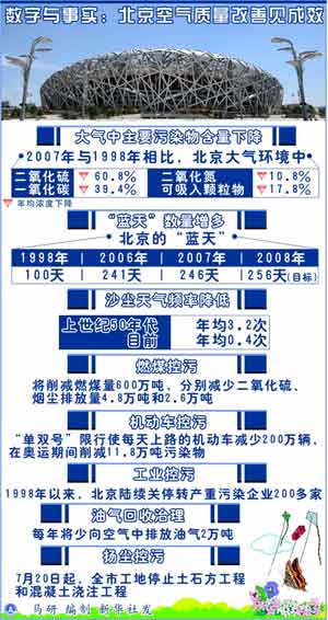 新華網北京7月23日電(程新閨 張淼淼 婁琛)自1998年正式提出申辦奧運以來,北京累計投入1400億元投入環境保護,以下是北京空氣質量改善措施與成效的相關數字與事實:
