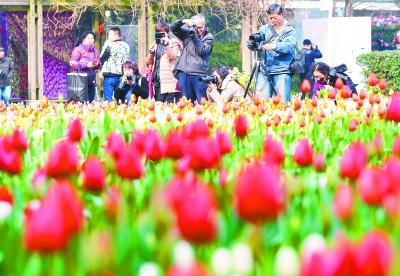 數百位市民站在圍欄外,爭睹“國泰”風采。不少攝影發燒友端起“長槍短炮”,對準“國泰”一陣猛拍。今年40歲的市民陳長春說:“‘國泰’的確很有國際范。這么快就能看到郁金香,是我們武漢人的福氣!”