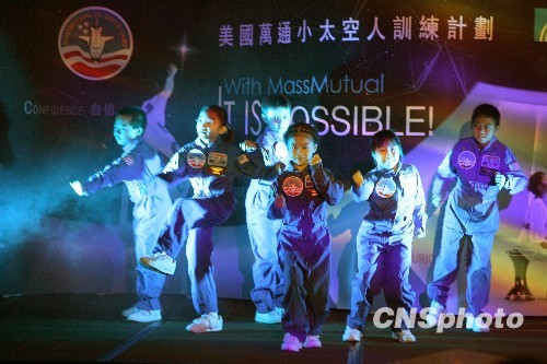 入選“第十一屆美國萬通小太空人” 赴美國亨茨維爾太空訓練營受訓的六位香港小太空人,學成歸來受歡迎。八月十九日,他們在主辦機構假香港四季酒店舉辦凱旋歸來慶;顒又,表演集體太空舞展示才藝。 中新社發 鄭祚聲 攝